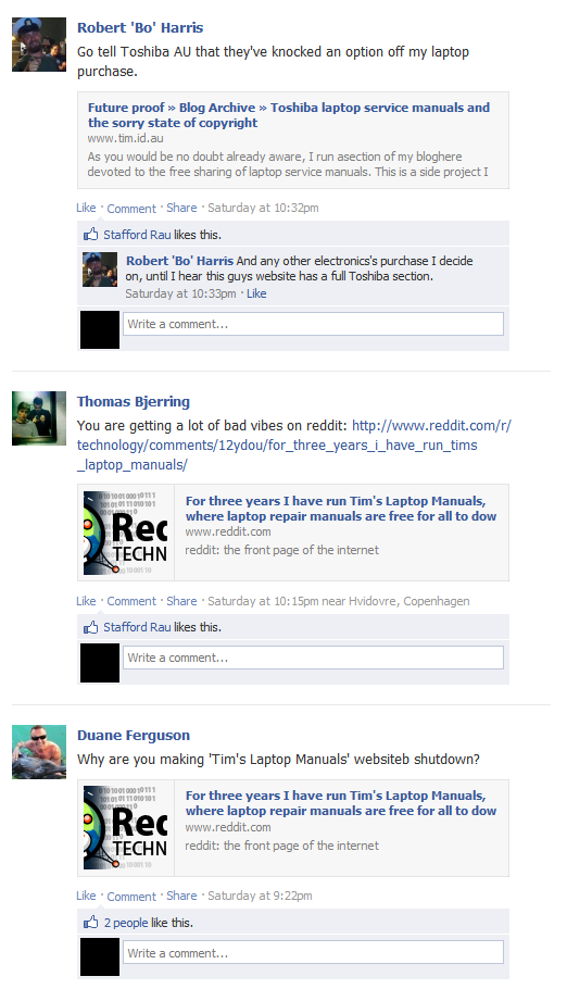 I’ve also just been alerted to the fact it’s on Slashdot as well: http://slashdot.org/story/12/11/10/1334221/toshiba-pursues-copyright-claim-against-laptop-manual-site