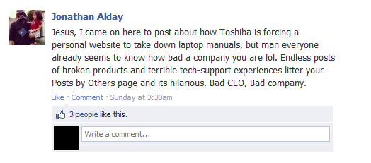 I’ve seen a few posts on the Facebook pages of Toshiba US and Toshiba Australia with some great comments. It’s interesting that of all of these, the only one anybody at Toshiba actually replied to included a link to irisvista.com – it’s clear to even their customer service people that Toshiba could be doing more for its customers.